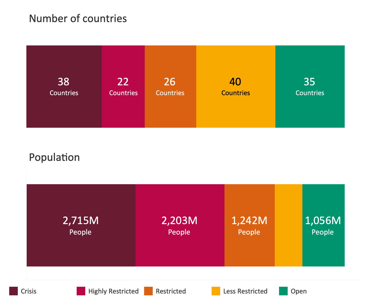 The bigger picture is grim: the Varieties of Democracy Institute (V-Dem, which produces the indicators for the Global Expression Report) shows that advances in global levels of democracy made over the last 35 years have been wiped out. People now experience limits on their democratic rights at levels not seen since 1986.